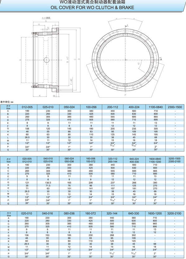 WO系列是一種組合式離合器/制動裝置,采用燒結青銅摩擦材料油驅動。它通常用于接合和制動任何工業機器(偏心壓力機、關節壓力機、金屬沖壓、封邊機、沖床、深沖壓力機、機械剪切機、熱鍛等)。它是要求高性能和最大可靠性的機器的理想產品。
